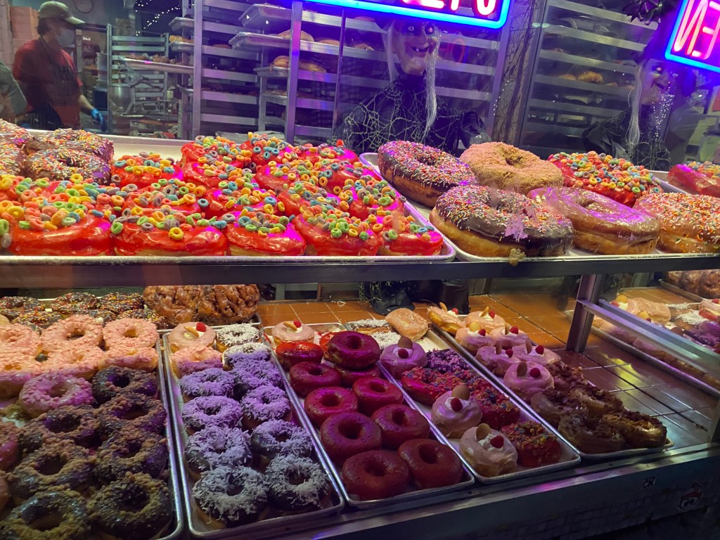 Afterwards James had planned on taking me to a favorite café in North Beach for deserts and debriefing (that’s a thing I like to do). But I was tired. So we opted for a stop along the way home at Bob’s Donuts, a hugely popular late night snack spot.