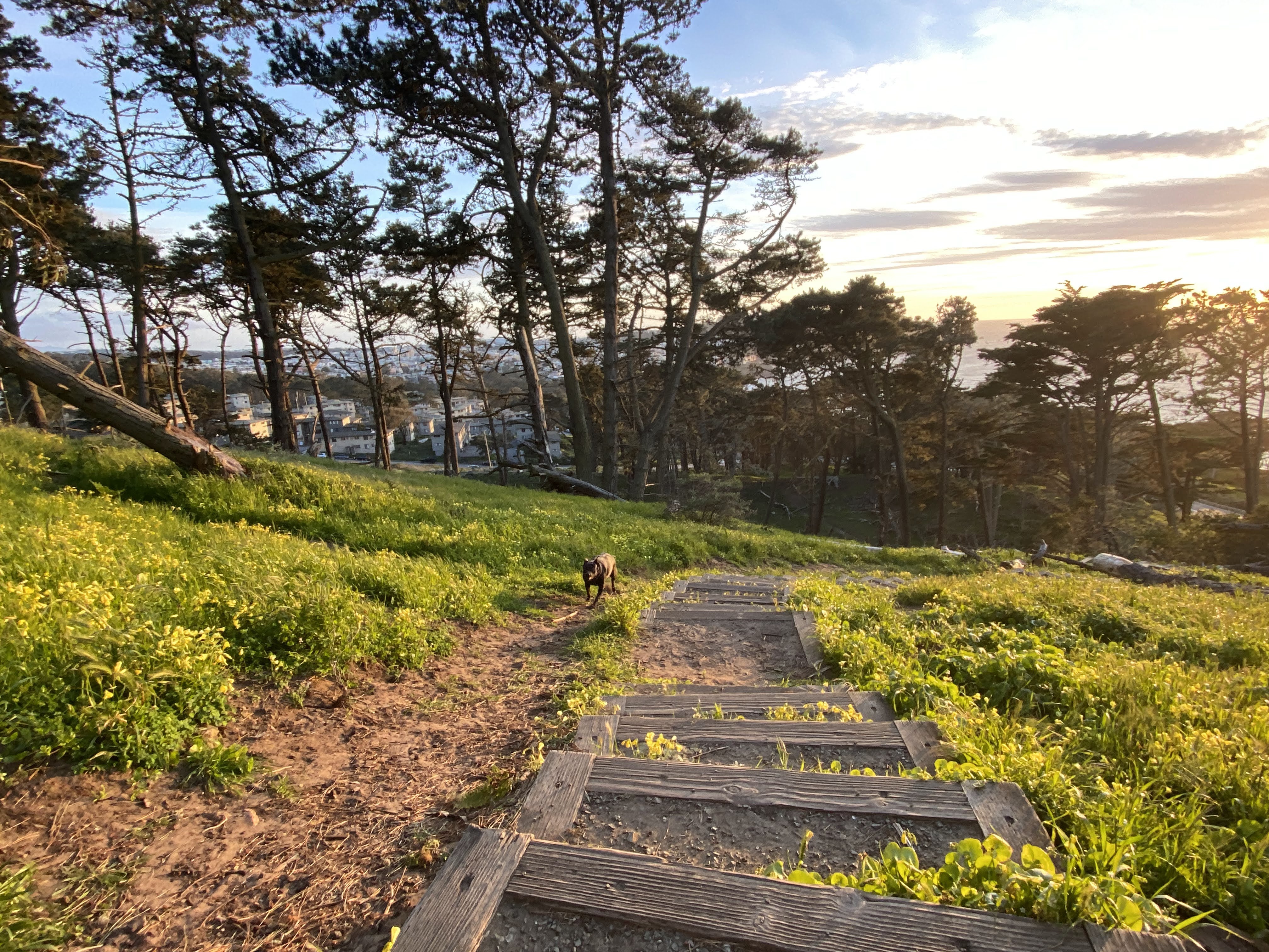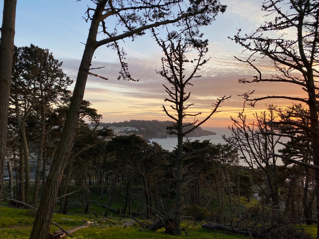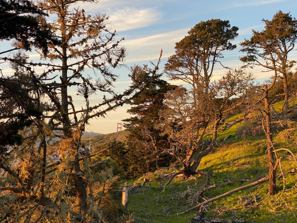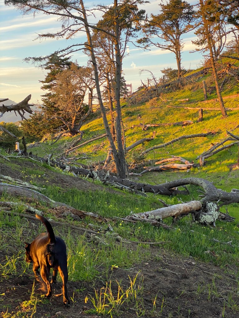 We took Sweetheart on a hike in The Presidio, and this is what we explored – 1,000 Steps Trail, and Rob Hill Campground. Hit that link to see the entire album, but here are the highlights. Every photo and video was taken on my iPhone. I still haven’t gotten all my camera gear that was stolen replaced. Scroll down to the end to see what Bard, my trusted AI says about The Presidio…